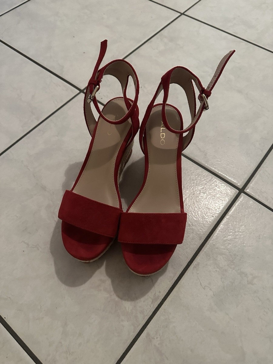 Step into summer with these vibrant red wedge sandals from ALDO. The comfortable wedge heel and espadrille-style rope platform offer both style and support, while the adjustable ankle strap ensures a secure fit.