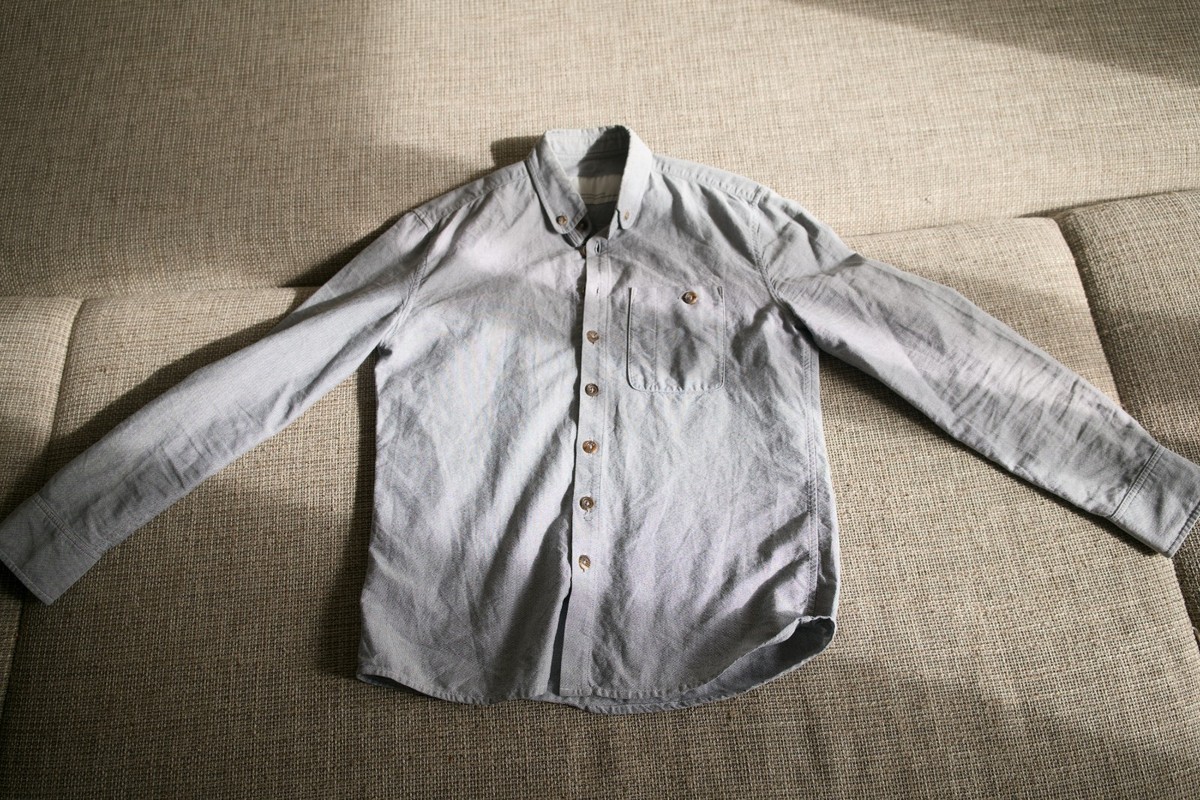 S.E.H. Kelly cotton shirtHorn buttons, excellent craftsmanship as always.Ignore the discoloration in pictures - in real life it's uniform. Sunlight interacting with the lens in weird ways.Like new.Ignore the little bits of purple in the photos - it's an interaction between the lens and the sunlight. In person the shirt is purely black and white.Pit to pit 51cmTop of shoulder to cuff 60cmCollar seam to hem back length 67cmShoulder to shoulder back 43.5cm
