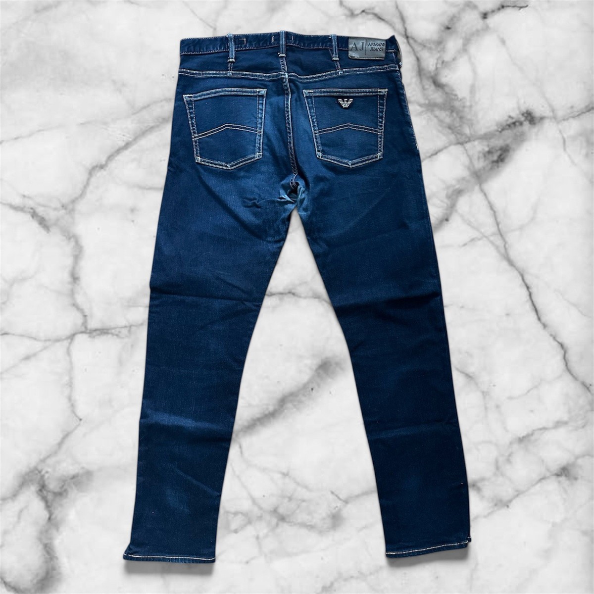 Dunkelblaue Slim-Fit Jeans mit edler Verarbeitung• Rückseite mit zwei Taschen, eine davon mit gesticktem Adler-Logo von Armani Jeans• Lederpatch am Bund mit „A/J ARMANI JEANS“• Moderner Schnitt, ideal für einen stilvollen Casual-Look