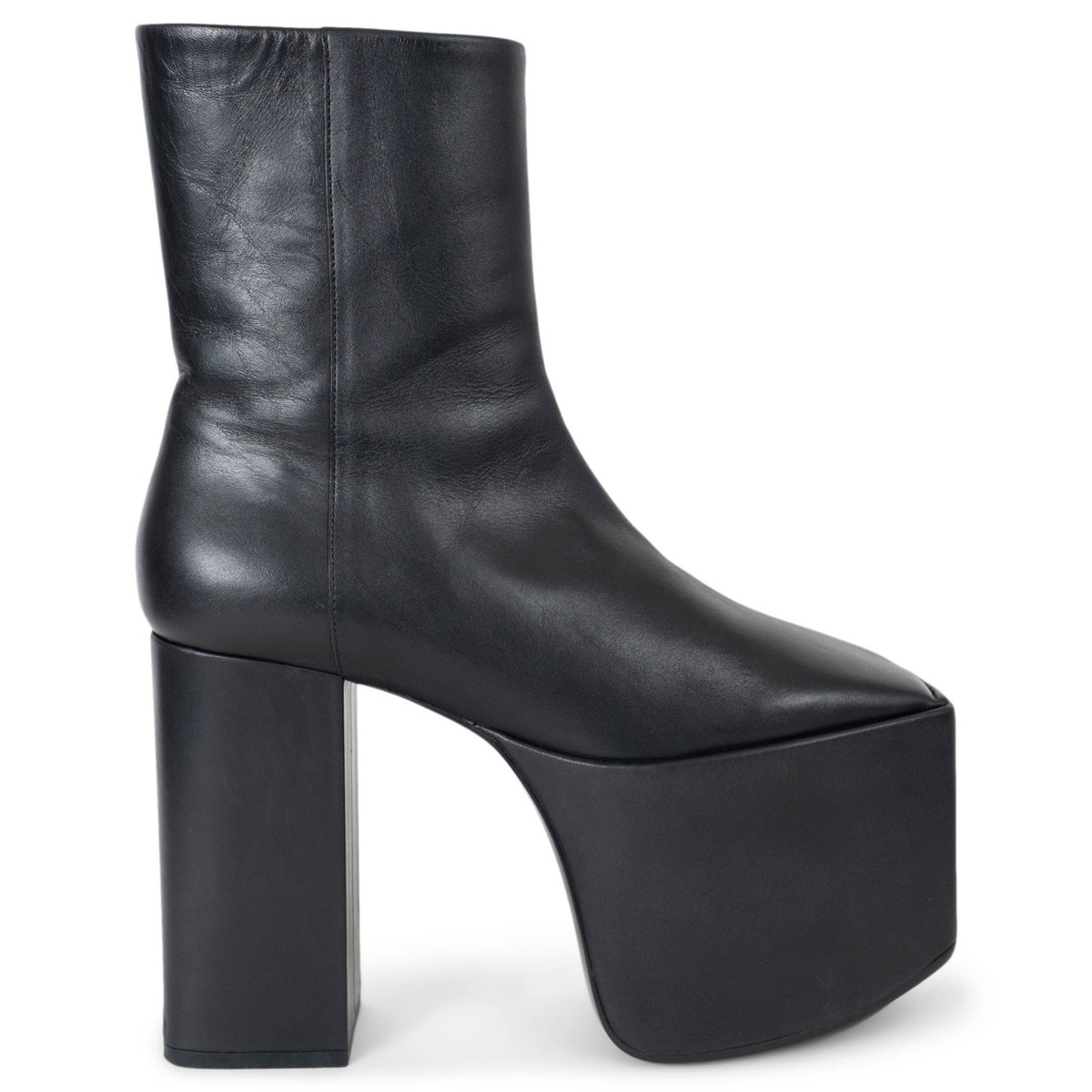 authentic Balenciaga 2016 platform leather ankle boot in black delivers a bold, fashion-forward silhouette rooted in the brand’s signature avant-garde aesthetic. Crafted from smooth black leather, the design features a striking platform sole that adds height while maintaining stability and comfort. The sleek ankle-height profile balances structure with modern edge, making it a standout piece for both everyday wear and statement styling. Have been worn once and shows a few scratches on the right shoe. Overall in excellent condition. MeasurementsModel444793Imprinted Size36Shoe Size36Inside Sole23cm (9in)Width6.5cm (2.5in)Heel12cm (4.7in)Platform:9cm (3.5in)Shaft17cm (6.6in)Top Circumference24cm (9.4in)ShopZurich - RämistrasseAll our listings include only the listed item unless otherwise specified in the description above - Price includes US tariffs - for all other countries price does not include import duties & taxes - check your countries import laws prior purchase------------------------------------------------------------------------------------------------------------------------------------------ Terms & Conditions Luxury-Shops is not affiliated with any of the name-brand items we offer for sale.Warranties and Liabilites: Luxury-Shops declines all responsibility and cannot be held liable for any damages caused by the use of a specific garment.We also cannot be held responsible for the quality of an item (we are not the manufacturer) or any damages resulting from a manufacturing defect.No warranties of any kind are given or implied.Condition of Merchandise: Luxury-Shops offers for sale luxury top-quality products. We fully disclose the condition of each item. In the description of each product, Luxury-Shops will specify the conditions if different from the standards set by the market (Required disclosure of prior use)The main characteristics of products are shown in great detail (through numerous photographs and in-depth descriptions). The products offered for sale MAY NOT correspond to the real garments in terms of image and color because of the Internet Browser or Monitor used (color calibration). Luxury-Shops disclaims all responsibility.Every used item offered by Luxury-Shops has been cleaned and restored to the best possible condition unless noted otherwise. Every used or vintage handbag has been polished and refinished. Your purchases will be sent to you ready to be used or worn.Please be aware that vintage items may be