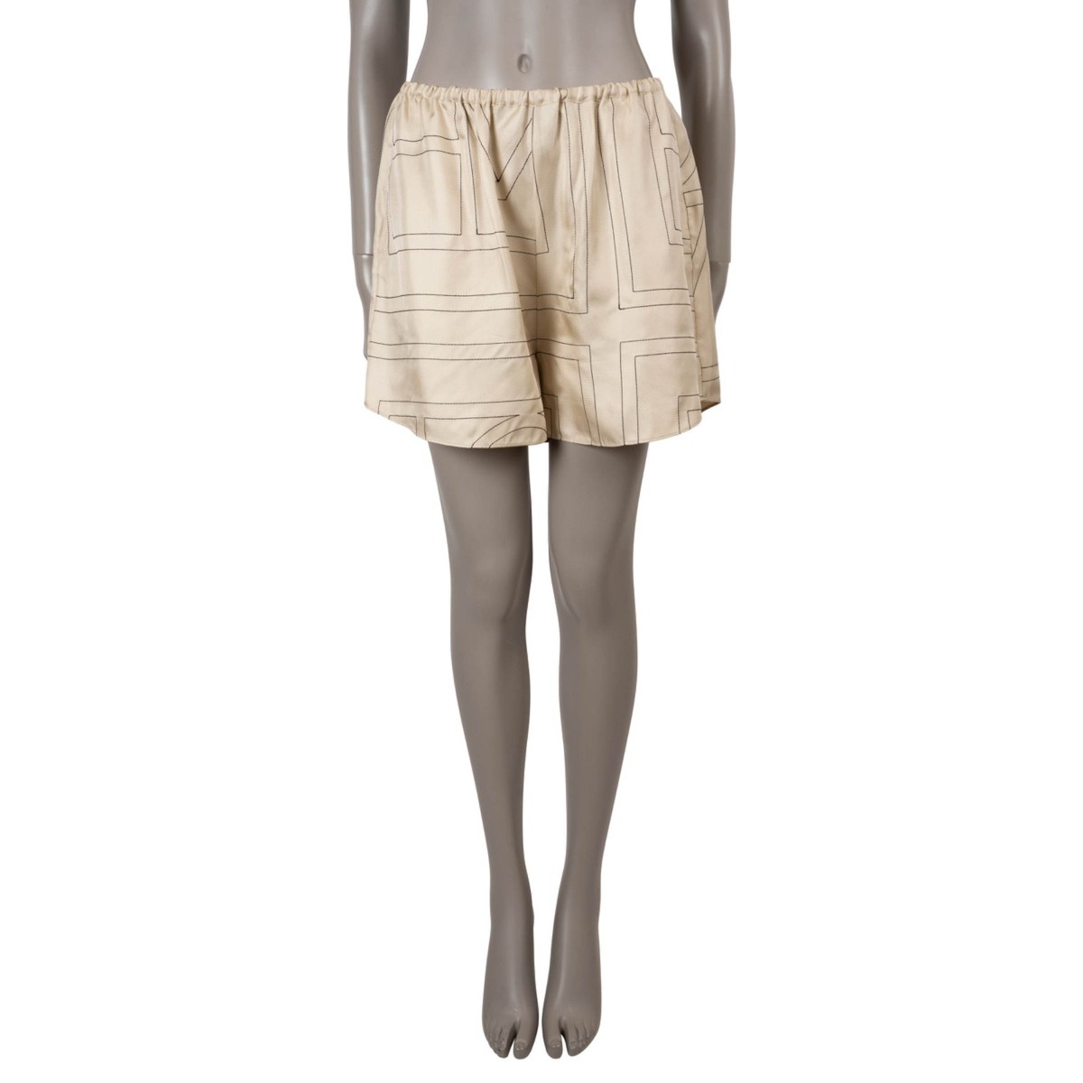 Welcome to LUX l Authentic Designer ConsignmentRämistrasse 25, 8001 Zürich, Switzerland I Tue-Fri 11-18:30 & Sat 11-16:00By bidding on our auctions you are agreeing to our Terms and Conditions below.All items come with authenticity guarantee!------------------------------------------------------------------------------------------------------------------------------------------ Product Description:100% authentic Totême pyjama shorts in cream twill silk (100%) with the house’s graphic contrasting top-stitched monogram pattern. Designed in a fluid, relaxed silhouette, they fall with an easy straight cut and mini length, featuring an elastic waistband and two discreet side slit pockets for effortless wear. A refined, minimalist piece—complete the set with the matching pyjama shirt available in a separate listing. Have been worn and are in excellent condition. MeasurementsModel223-226-707Tag Size40SizeLWaist74cm (28.9in) to 100cm (39in)Hips From120cm (46.8in)Length42cm (16.4in)Inseam7.5cm (2.9in)Rise33cm (12.9in)ShopZurich - RämistrasseAll our listings include only the listed item unless otherwise specified in the description above - Price includes US tariffs - for all other countries price does not include import duties & taxes - check your countries import laws prior purchase------------------------------------------------------------------------------------------------------------------------------------------ Terms & Conditions Luxury-Shops is not affiliated with any of the name-brand items we offer for sale.Warranties and Liabilites: Luxury-Shops declines all responsibility and cannot be held liable for any damages caused by the use of a specific garment.We also cannot be held responsible for the quality of an item (we are not the manufacturer) or any damages resulting from a manufacturing defect.No warranties of any kind are given or implied.Condition of Merchandise: Luxury-Shops offers for sale luxury top-quality products. We fully disclose the condition of each item. In the description of each product, Luxury-Shops will specify the conditions if different from the standards set by the market (Required disclosure of prior use)The main characteristics of products are shown in great detail (through numerous photographs and in-depth descriptions). The products offered for sale MAY NOT correspond to the real garments in terms of image and color because of the Internet Browser or Monitor used (color calibration). Luxury-Shops disclaims all responsibility.Every used item offered by Luxury-Shops has been cleaned and restored to the best possible condition unless noted otherwise. Every used or vintage handbag has been polished and refinished. Your purchases will be sent to you ready to be used or worn.Please be aware that vintage items may be delicate and may not be as resilient as a brand-new item. Please take appropriate care when using a vintage item. Damage to items after receipt or use by customers is not the responsibility of Luxury-Shops.Luxury-Shops is a reseller of authentic designer and vintage merchandise. We are not an authorised dealer and are not affiliated with the brands we sell on our site. Store-new designer items are only available from an authorised dealer or the actual store. Once the item leaves the authorised dealer with a customer, the item is considered pre-owned. However, items can be pre-owned and in new condition - that is, never used by the owner. Below are the definitions of the descriptions we use.NEW: in new condition, that is, never used. This means the item may have been purchased by us from an authorized dealer or a store. New items may also be pre-owned, that is, purchased by one of our consignors and never used.  These items may have minor signs of handling as would any item available at an authorized dealer or boutique given that customers would reasonably handle an item wh…
