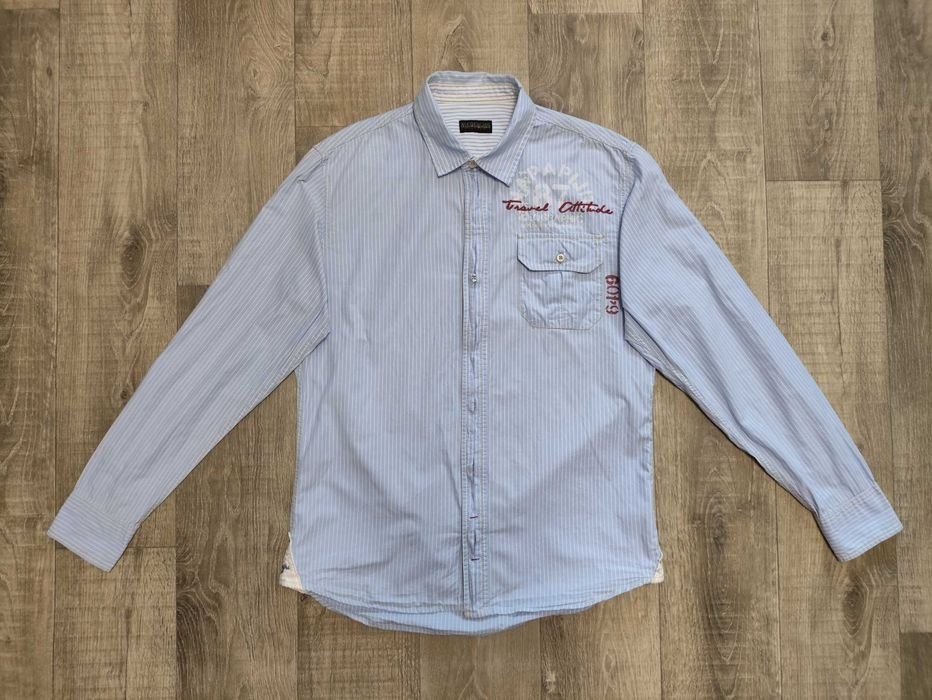 Men Napapijri Shirt Blue Cotton 40
