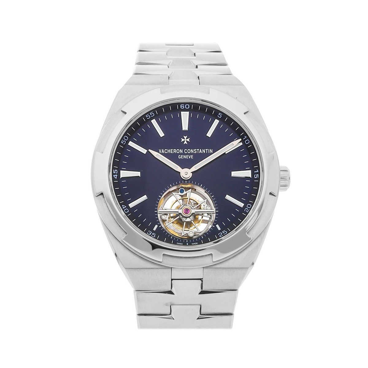 Diese Vacheron Constantin Overseas Tourbillon Uhr vereint Luxus mit Präzisionstechnik. Mit einem 42mm Edelstahlgehäuse beherbergt sie ein automatisches Tourbillonwerk für außergewöhnliche Genauigkeit. Das Design ist robust und elegant, mit Saphirglas und Wasserdichtigkeit für Langlebigkeit.