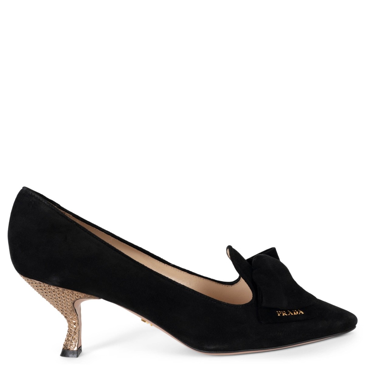 Items similar to "73411 Authentic Prada Black Suede Pumps 2012 Metal Heel Bow Shoes 39 5"