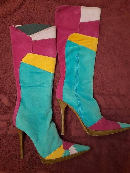 BeschreibungStylische Damenstiefel aus mehrfarbigem Leder, Größe 40. Die Absatzhöhe beträgt 12 cm, perfekt für die Übergangszeit. Hergestellt in Italien. Bei Fragen stehen wir Ihnen gerne zur Verfügung. Der Preis ist verhandelbar und Rabatte sind möglich.Description (English)Stylish women's boots in multicolor leather, size 40. The heel height is 12 cm, perfect for the transitional season. Made in Italy. Please feel free to ask any questions. The price is negotiable and discounts are possible.Description (Français)Bottes pour femmes en cuir multicolore, taille 40. Hauteur du talon de 12 cm, parfaites pour la saison de transition. Fabriquées en Italie. N'hésitez pas à poser vos questions. Le prix est négociable et des remises sont possibles.Descrizione (Italiano)Stivali da donna in pelle multicolore, taglia 40. Altezza del tacco di 12 cm, perfetti per la stagione di transizione. Made in Italy. Non esitate a porre domande. Il prezzo è trattabile e sono possibili sconti.
